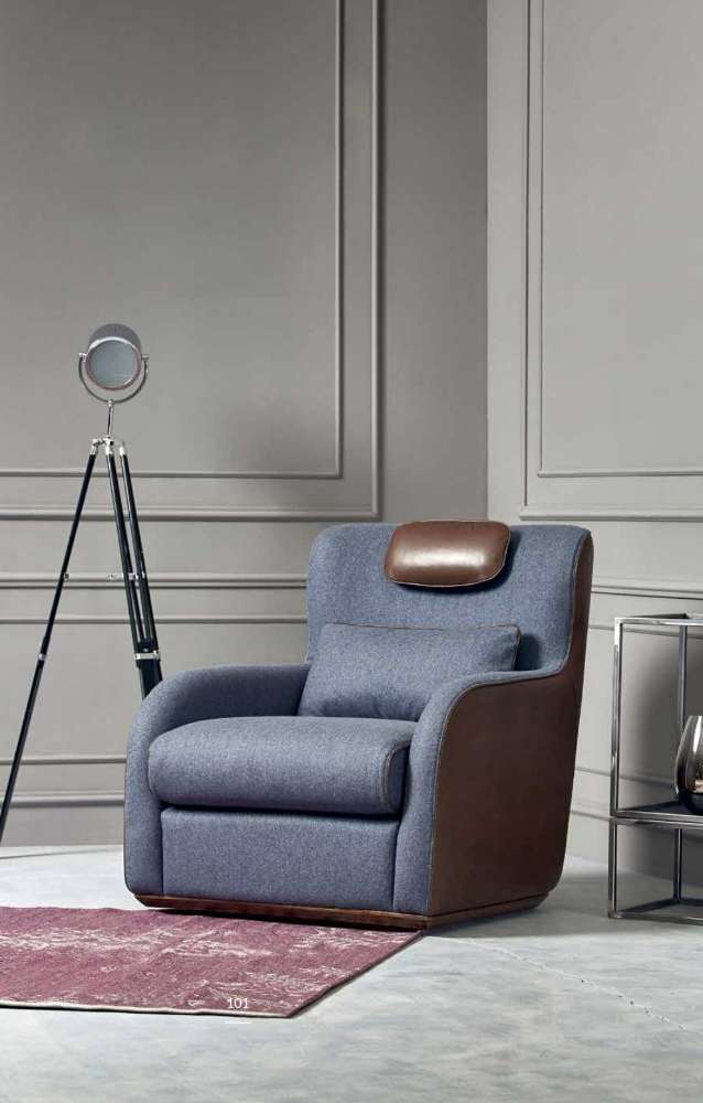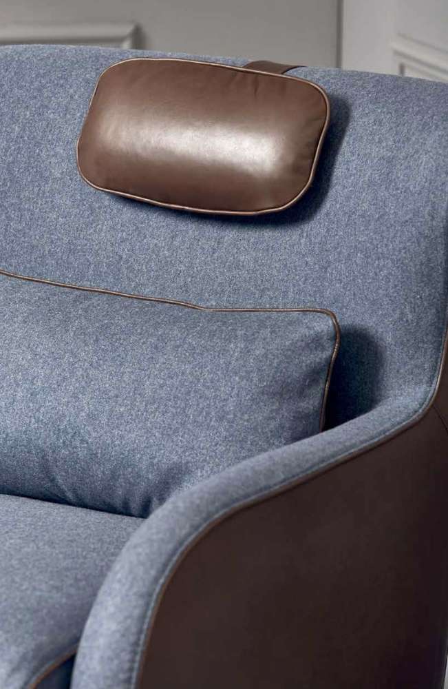 Armchair from important sitting, large headrest with clean shape delimited by a contrasting profile along the edge.