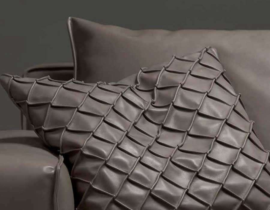 Seat Cushions in differentiated-density polyurethane foam with 100% goose feather with pure cotton feather proof fabric lining, covered by polyester fiber layers.