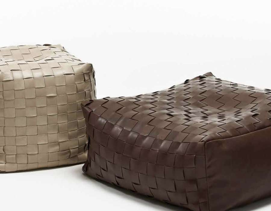 A pouffe of different sizes, featuring a woven warm artisan feel.